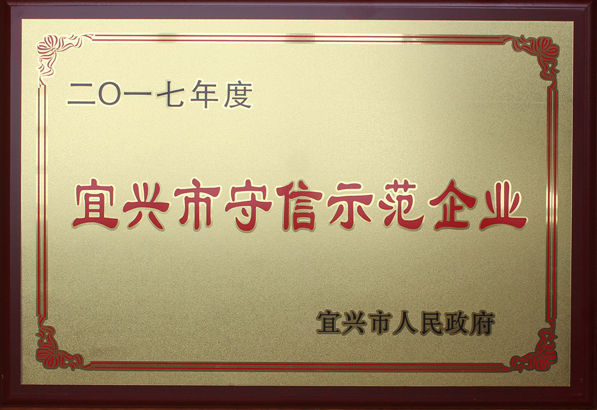 集團公司先后通過了ISO 9001:2015質量管理、GBT 24001-2016ISO 環境管理、中國特種設備制造許可證。榮獲了“宜興市守信示范企業”、 “稅收貢獻十強企業”、“標兵企業家”、“明星企業”、“江蘇省質量服務誠信AAA級單位”等榮譽稱號。